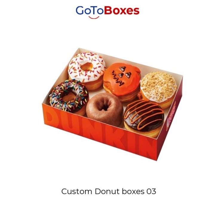 Printing and designing can turn your normal and dull packaging into fancy and charming. Now you can customize your Custom Donut Boxes with stylish and attractive printing from GoToBoxes. This an amazing opportunity that is budget-friendly and you can have a huge quantity with quality at very low and cheap rats. You can make your Donuts Packaging charming and appeal by picking any printing option from off-set printing, digital printing, Kraft Donut Boxes, and 3D printing. They're also free designing help available at GoToBoxes according to the marketing value.