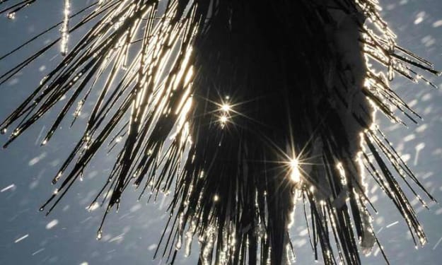 I stare up at the stars and trees again. I always love looking up at the branches that reach up into the sky. I came here a few times in the summer, when my roommates acquired a code from a friend. I fell in love with the land then- the massive trees, the open sky, the hot tub, and