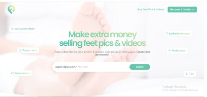 - FeetPics.com offers various earning opportunities to its models. For example, the creators can earn by preparing custom content, hiding exclusive content behind the paywall, getting referral bonuses, or anticipating tips.