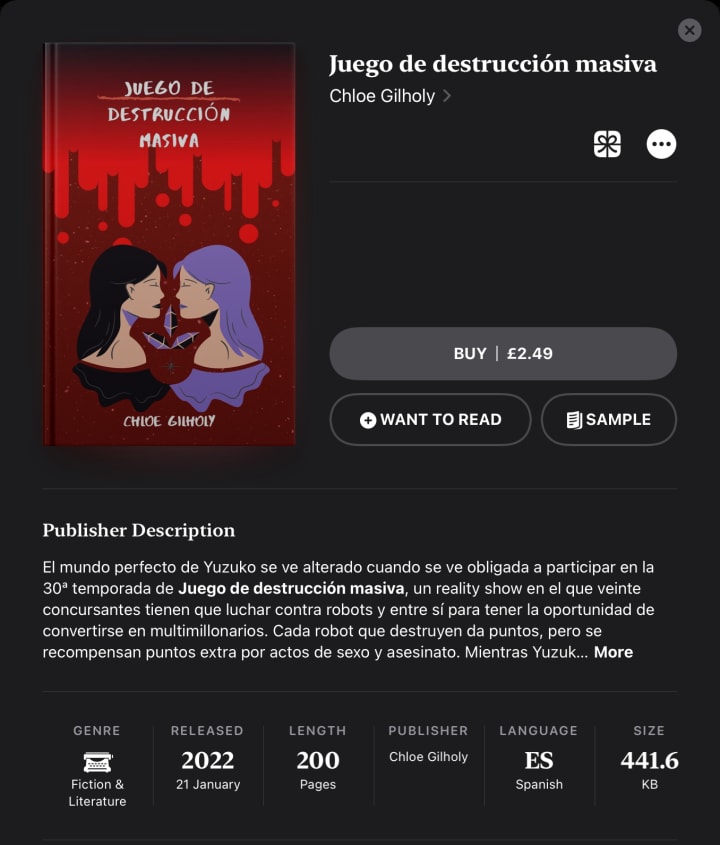 I was always curious what my work would look like in another language. I wasn’t aware of the options available until I found Babelcube. Then I also discovered Tektime and Fiberead through social media. These three sites follow the same system: you up.pad your work, wait for it to be picked up by a translator then it will hopefully be published in your chosen language. The standards of the translations are exactly the same between these three sites. The only difference is the facilities.