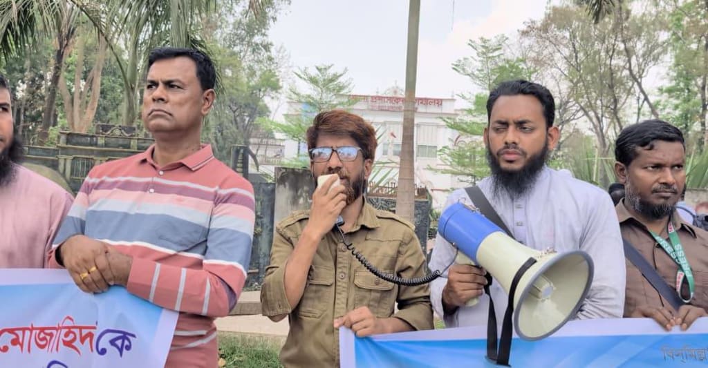 A protest and human chain were organized in front of the Gazipur District Commissioner's office in response to the death threat issued against Mohammad Mojahid, a journalist of Daily Naya Diganta, for publishing a report on corruption and irregularities in Gazipur.