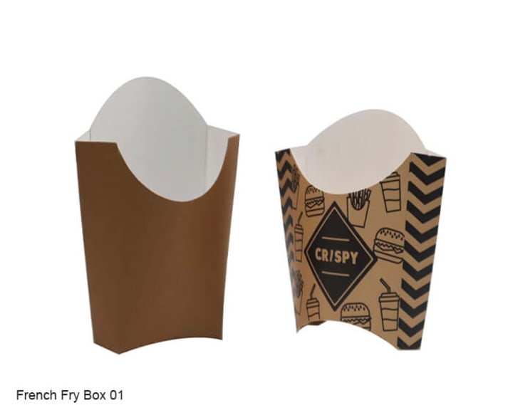 The packaging trends and techniques are increasing day by day and there is a huge variety of printing styles and designs. By getting packaging according to your choice and desire you can have your packaging unique and stylish. The boxing style for French fry packaging is mostly found in front tuck, bottom seal tuck, triangular boxes, the boxes with handles, gable boxes, and tray boxes for French fries. You can add window die-cut to your boxes to entice the clients and also get any shape and design for your Fries Boxes. The addition of PVC sheet also gets the attention of the customers and they first attract to your packaging and then towards your fries. So, you have to get your packaging in appealing and desiring looks.