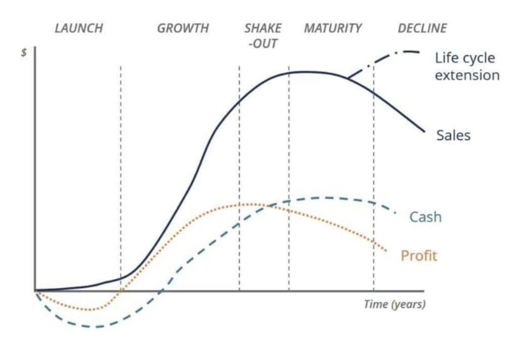 The business life cycle is the progression of a business over time. By convention the cycle has five stages. However, my list includes a sixth — pre-launch — that naturally comes first; it is followed by the traditional definitions of launch, growth, shake-out, maturity, and decline.