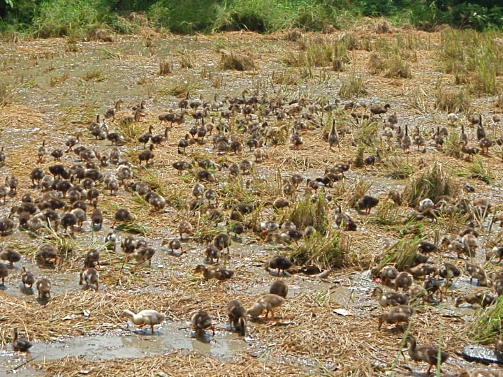 A massive field full of ducks, now being English you equate seeing ducks with water and ponds, not in the middle of rice field and in such great number, also the noise they made was deafening as well. I regret I never asked how and why in response but I was too busy shooting as much footage of the ducks as I could as I knew that one shot of hundreds of ducks would be a scene stopper onboard!