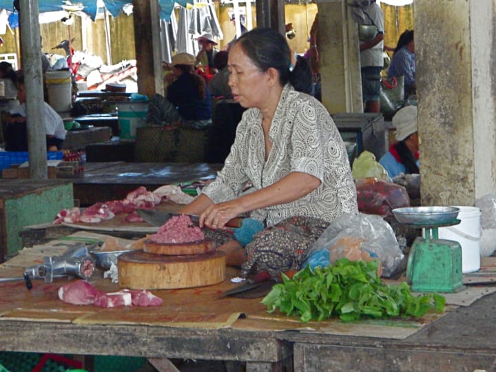 Next we went to small open air market which in a post Covid world is somewhere I doubt all the handwashing instructions are being followed. It was the smells of this place that really stood out and as you walked through there was almost always someone hacking at some raw meat somewhere.