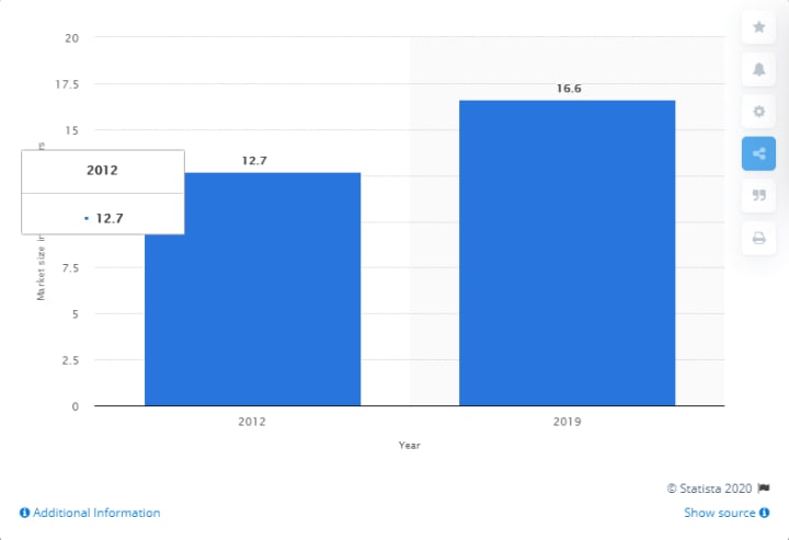 With a Compound Annual Growth Rate (CAGR) of around 4.8%, the seasoning and spices market grew from $12.7 billion in 2012 to $16.6 billion in 2019, according to Statista.