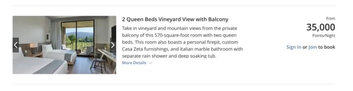 Paying 35,000 credit cards points for a one night stay at the Alila Napa Valley was a great experience for me. I will definitely stay here again with points next time!