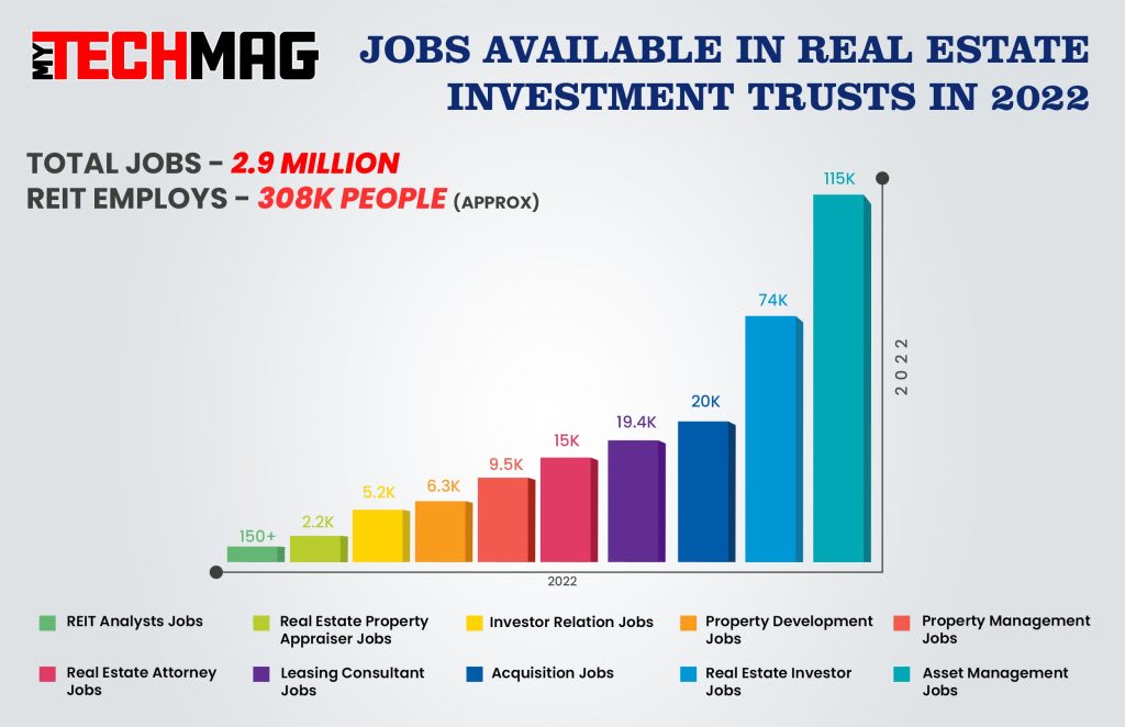 Real estate investment trusts indirectly provide 2.6 million full-time jobs, according to estimates. Growth is taking place, which is wonderful news for anyone looking to work for a REIT organisation. As a result, there will be a lot of job possibilities and the potential to earn substantially more money than in other areas of the real estate sector.