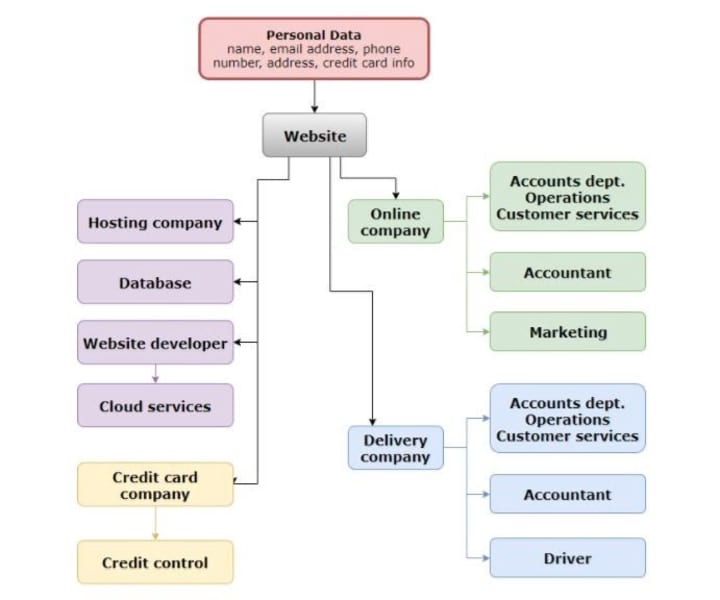 You can clearly see how the personal data you handed over by placing a single order online can quickly spread to multiple users within a company plus multiple users outside of that company — all to enable your payment to be taken and your order processed and delivered.