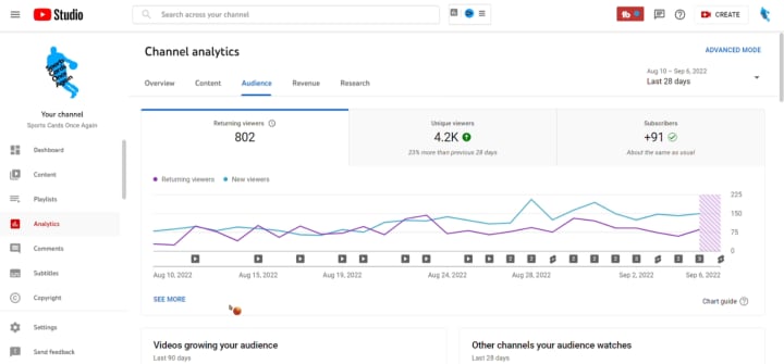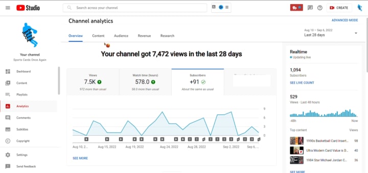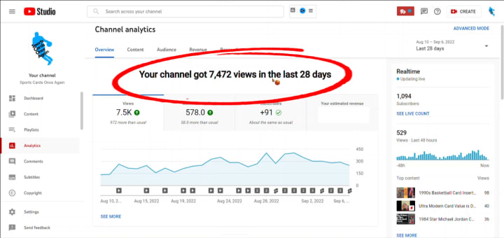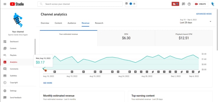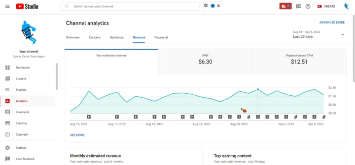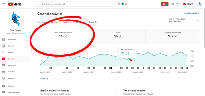 The first video I uploaded onto my sports card oriented YouTube channel was in October 2021. Ten months later, shortly after uploading my 125th video, I finally hit that coveted 1,000 subscriber mark and was able to get my channel monetized. I actually hit the 4,000 watch hour requirement about 3 months before that, which was another milestone in itself for me, but August 2022 is when I was finally able to become monetized. Let’s look at what all you nosy people (I’m nosy too!) want to know: How much money am I now rollin’ in?