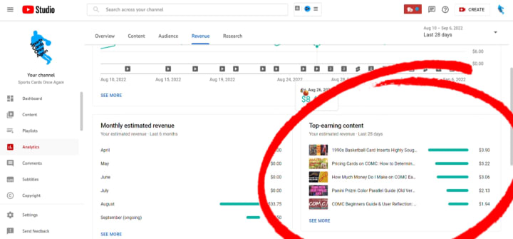 I can also see that three of my top five money making videos are all related to the same topic (the sports card marketplace, COMC), so perhaps I should be making more videos in that direction!