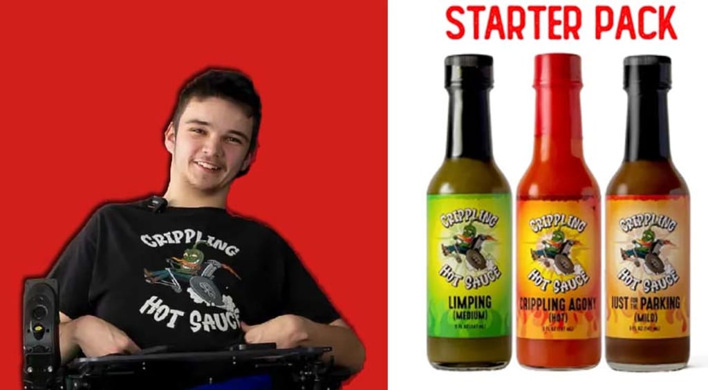 It started as a school project - a simple business plan for a fictional company. He scribbled down the name Crippling Hot Sauce, blending his love for spicy food with his sharp sense of humor about living with cerebral palsy. His teacher gave him a B-, calling the idea "unrealistic."