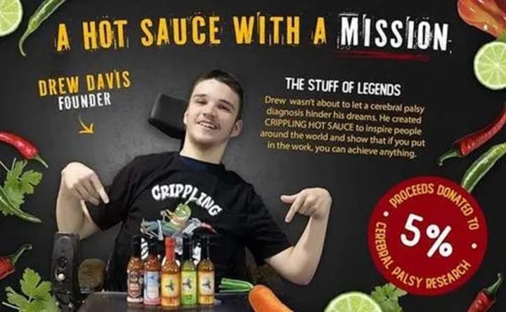 - Drew Davis, who was born with cerebral palsy, launched Crippling Hot Sauce in 2023 at the age of 18.