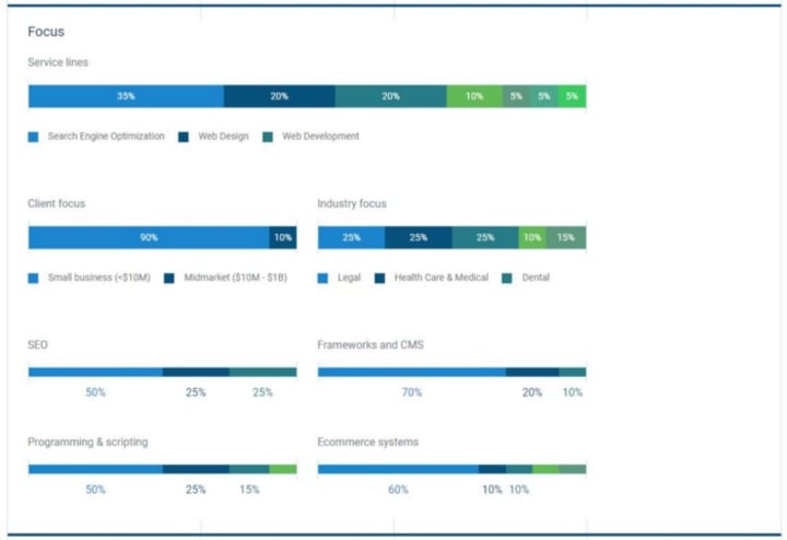 The top agencies specialize in many things, from web design, web development, to online marketing strategies. Most always focus on web design in some way or form coupled with other services.