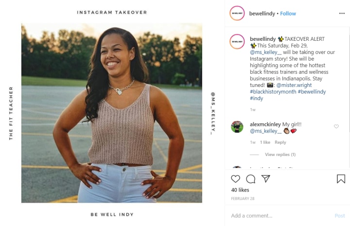 For instance, Be Well Indy partnered with an influencer, ms_kelly__, to build their brand awareness through a social media takeover.
