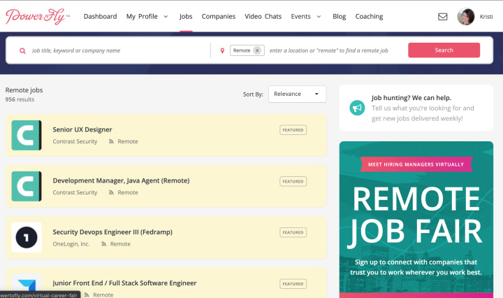 5. Find Fortune 500 companies hiring remotely on PowertoFly