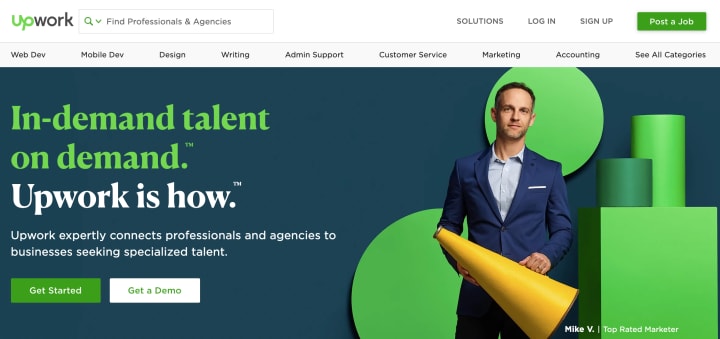 Over 5 million businesses use Upwork to find freelancers in a variety of categories. The basics include accounting, admin support, consulting, customer service, data science & analytics, design, engineering, IT & networking, legal marketing, sales, translation, web/mobile/software development, and writing.
