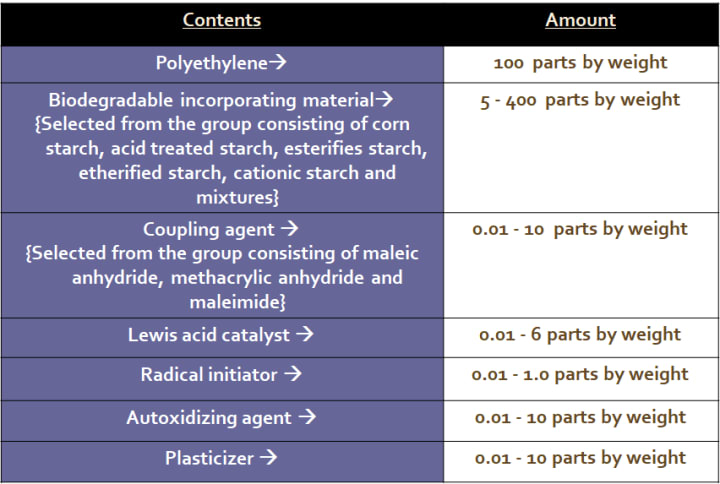 • Our work relates to a biodegradable film prepared by chemical bonding of starch and polyethylene.
