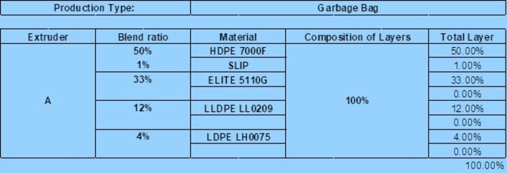 Suggested a practical mono layer trash bag blend percentage