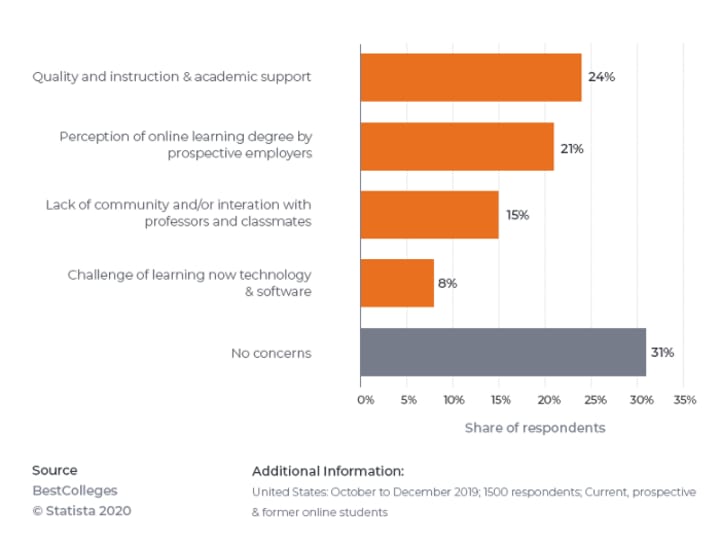 Here is a graph that concerns about online vs traditional learning options according to online students in the US in 2019