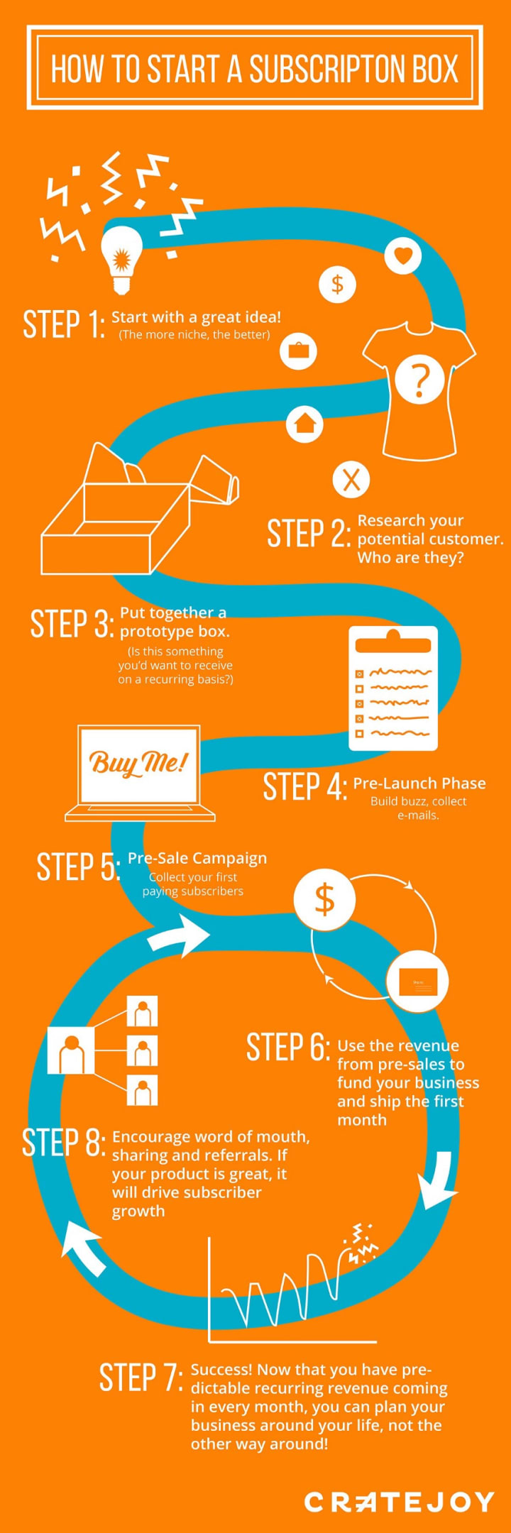 First things first. The following infographic shows the initials of starting an online subscription box business. If you have just started planning for a subscription box business, this is the basic roadmap for you.