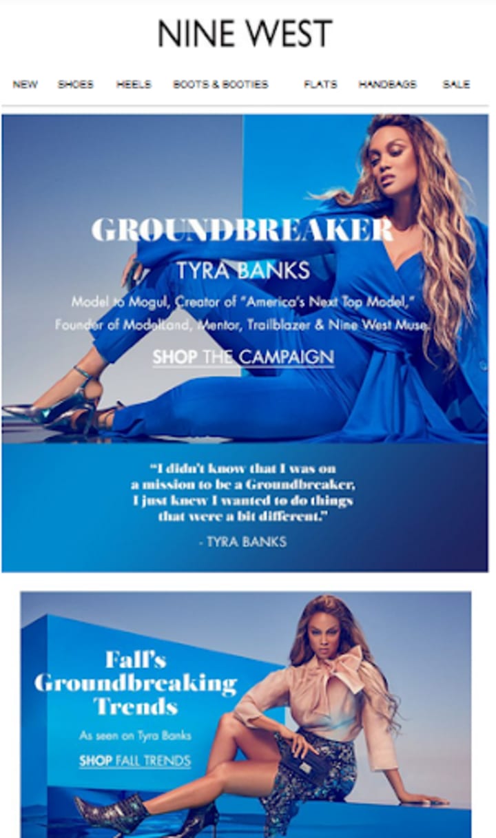 For instance, online fashion brand, Nine West featured American television personality, Tyra Banks, in their newsletter. They leveraged their influencer collaboration to promote their fall collection.