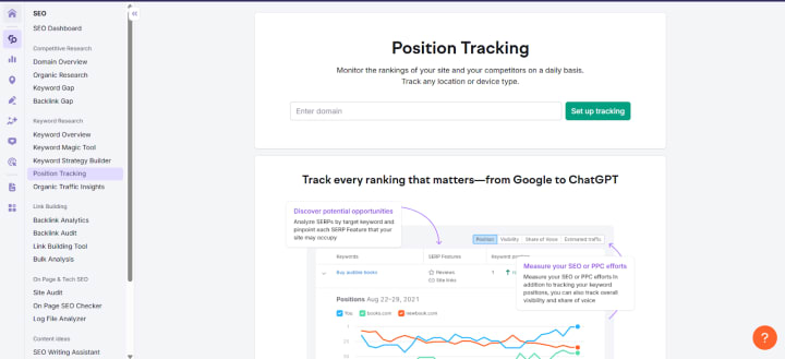 After optimizing and publishing, I needed to see how everything performed. That’s where Position Tracking came in. It allowed me to track my keyword rankings daily and provided insights like: