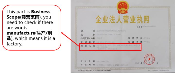 Business Scope is the most important part when checking a supplier’s business license. The most critical aspect when testing the business license of a manufacturer is "Company Scope" (almost). This is the simplest and most straightforward way to counterfeit the supplier. The business scope of a factory will include terms such as "produce or produce" (almost, sometimes), which do not include the business scope of a trading firm.