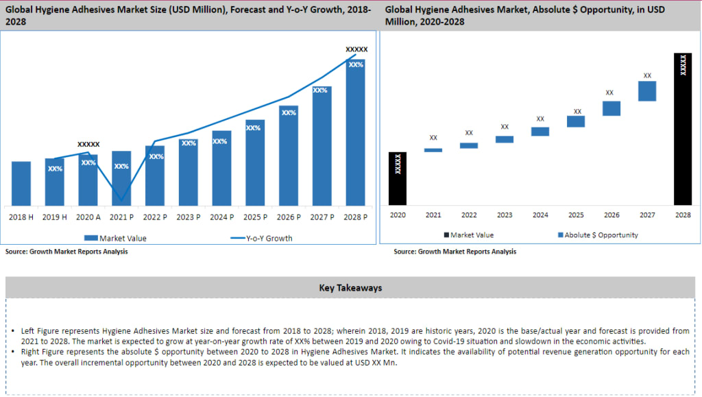 The global hygiene adhesives market size is estimated to expand at a considerable CAGR of 8% during the forecast period, 2021–2028. The growth of the market is attributed to the increasing demand for disposable hygiene products such as baby diapers and feminine products, which is creating demand for nonwoven high-performance hygiene adhesives globally, which is a major driver driving market expansion.