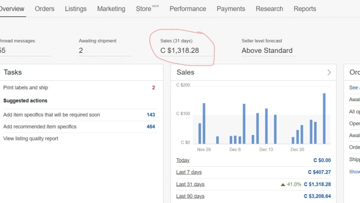 Here is a screenshot of my last month's sales on eBay.