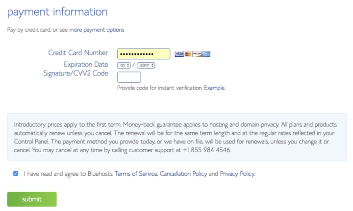 Audit the bundle data beneath and choose what term/additional items are wanted. The greatest value for your money is on the multi-month term, however, you can pick a day and a half, two years, or a year. Kindly note that Bluehost will charge you forthright for the whole term.