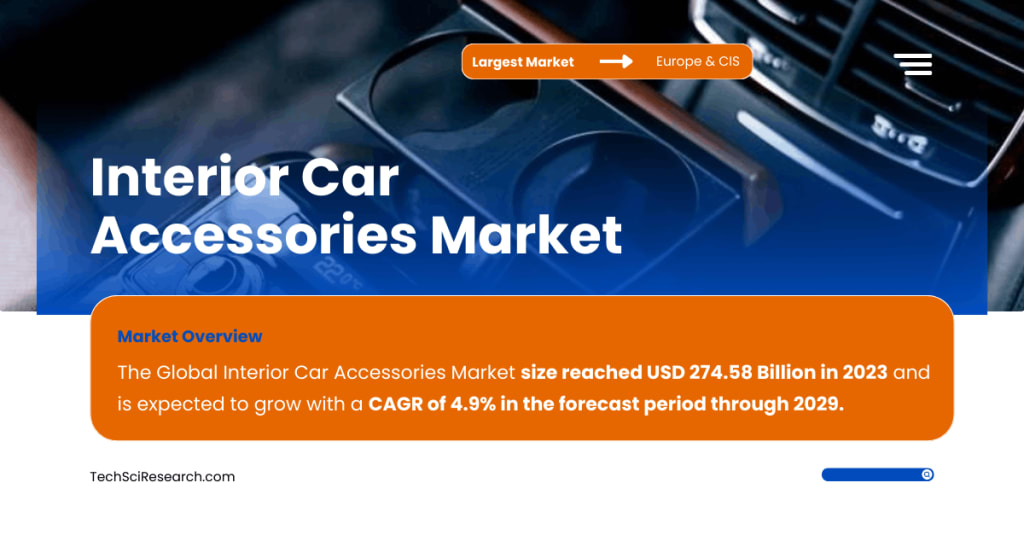 The global interior car accessories market is experiencing substantial growth, driven by technological advancements, evolving consumer preferences, and a focus on enhancing driving comfort and convenience. According to a recent report by TechSci Research, the market was valued at USD 274.58 billion in 2023, with an expected Compound Annual Growth Rate (CAGR) of 4.9% through 2029.