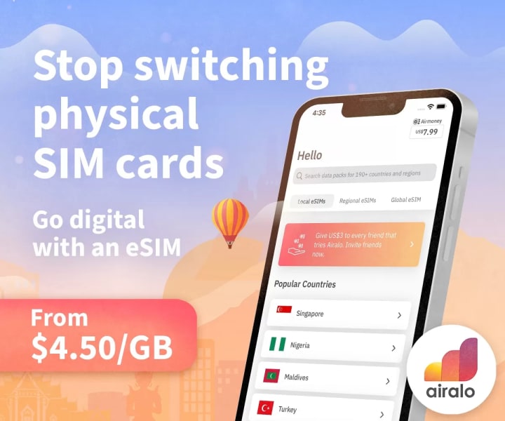 You can try Airalo at a discount and stack up credit for referring your friends. There’s a $3 “Airmoney” referral program.