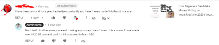 As you can check out the comment, there are some other writers who think Vocal Media isn't the right platform to publish content into. But these are just the opinions of people who are either making thousands of dollars on other platforms or they aren't making any money. Writing on any platform is always profitable in one way or another. Before I started writing on Vocal Media, I just publish one article and leave it. After some time, that article that to getting ranked on Google search, and just with that article I have made over $70 till now. In freelancing, getting $70 might be possible for some top-rated freelancers but the good thing about writing on Vocal Media is that now this very same article is going to make me money forever.