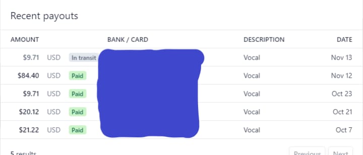As you can see I have made over $136 writing on this platform and I was paid for it. Why would I spend my time if I wasn't getting paid? My first withdrawn was $21, followed by $20, and my third withdrawn was $82. You see, Vocal Media is a great site to write and publish about anything you know about. There are some of the cons of writing this platform like you can't build your own community, there is no comment section or more customized features that would make Vocal a great writing platform and will attract those writers who quality writers who could grow the Vocal Media read to over 100 Million.