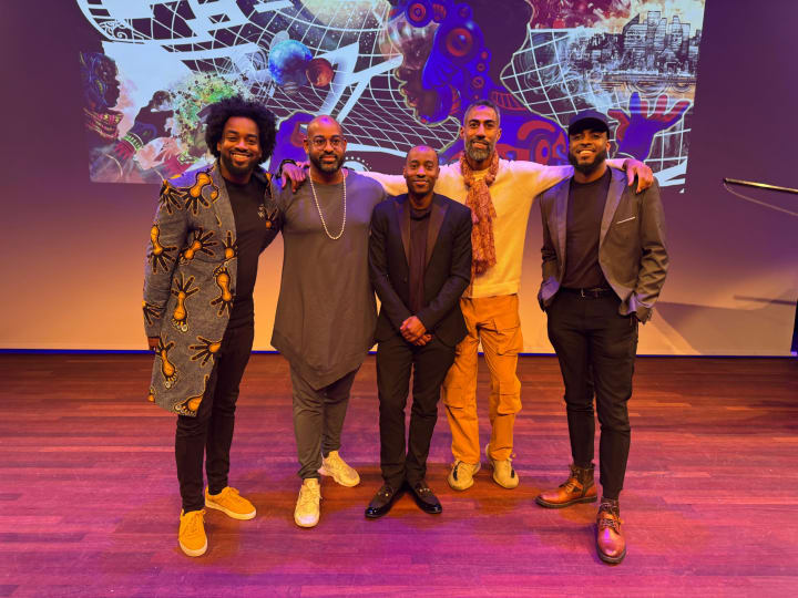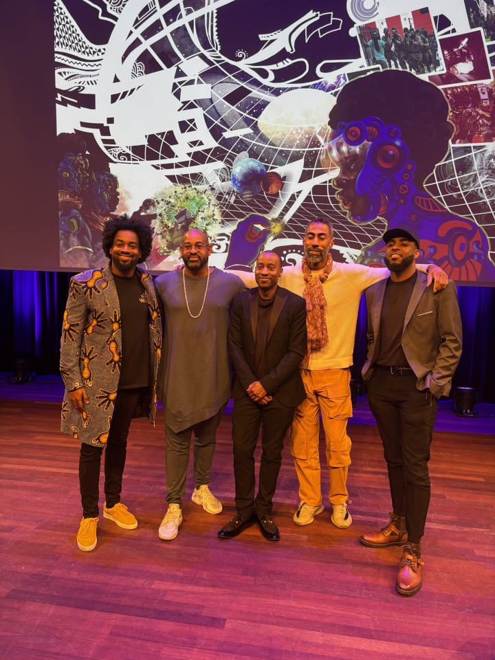 Adding intellectual depth to the conversation were Stacey Robinson and Reynaldo Anderson, two of the most influential figures in the Black speculative arts movement. Anderson, as the head of BSAM (The Black Speculative Arts Movement), has been a key player in shaping the global discourse on afrofuturism. Alongside Robinson, a visual artist renowned for his dynamic, futurist-inspired artwork, they provided insight into how the movement bridges art, literature, and cultural theory. Their combined perspectives offered the audience a richer understanding of the historical, cultural, and social dimensions of afrofuturism.