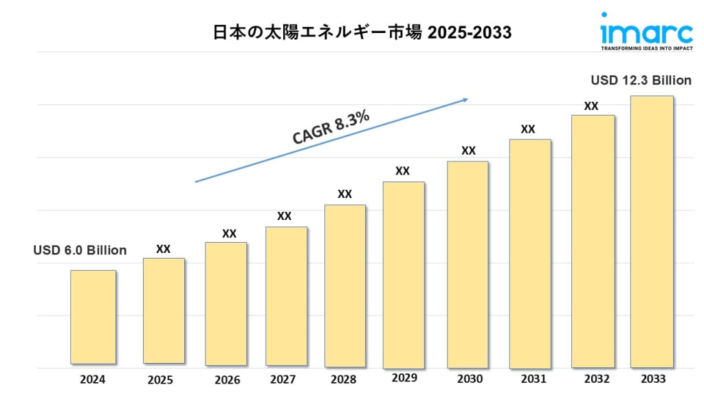 According to the latest report by IMARC Group, "The Japan solar energy market size reached USD 6.0 Billion in 2024. Looking forward, IMARC Group expects the market to reach USD 12.3 Billion by 2033, exhibiting a growth rate (CAGR) of 8.3% during 2025-2033."