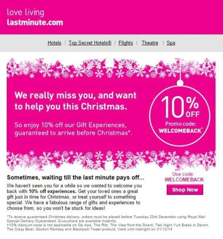 By delivering personalized messages at the right moment, you create a sense of urgency — especially when tied to limited-time holiday offers — encouraging shoppers to redeem their codes and complete their purchases before the Christmas season ends.