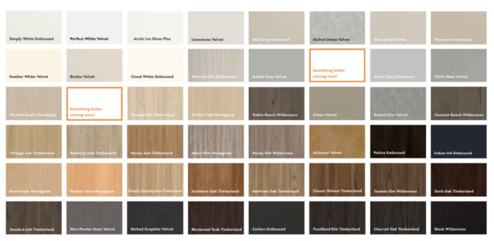 Bestwood Melamine Colour Options | Photo Credit - Bestwood