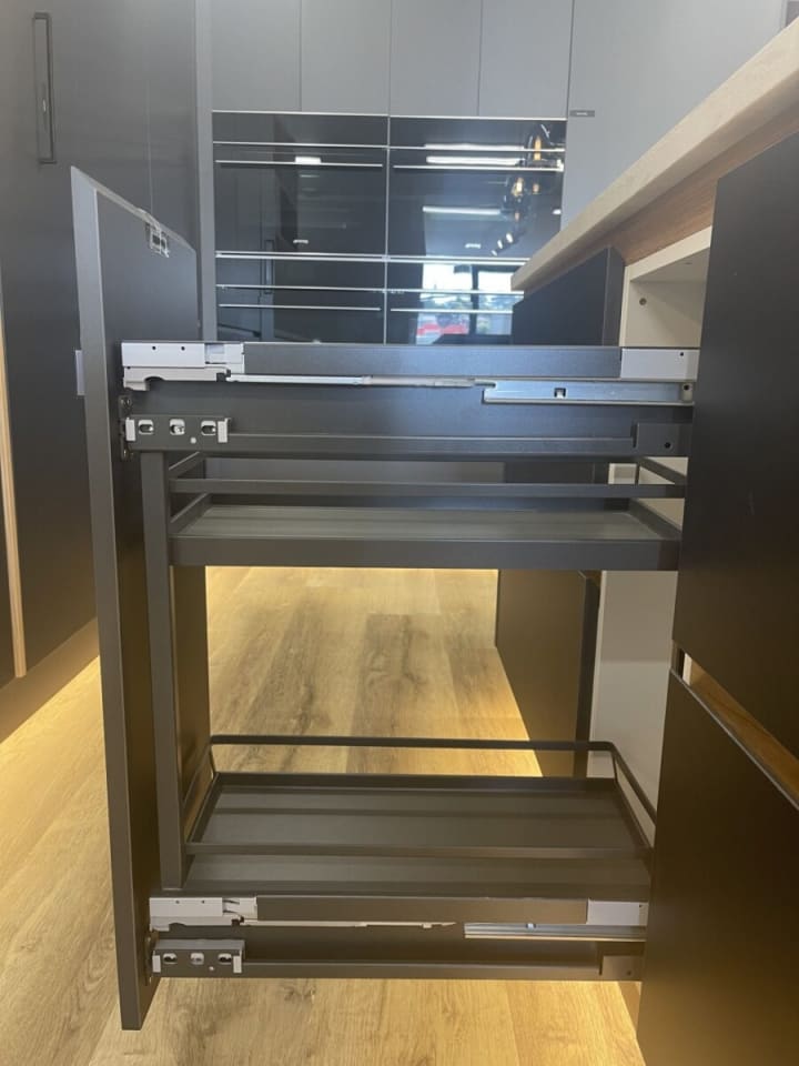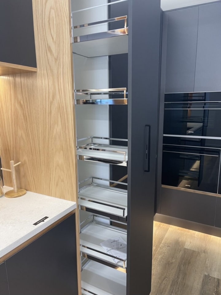 A pull out pantry and pull out condiment storage solution is a great addition to your kitchen. These solutions are designed to maximise your storage space, allowing you to store more items in a compact and orgnised manner. They are especially useful for smaller kitchens where space is limited and every inch counts.