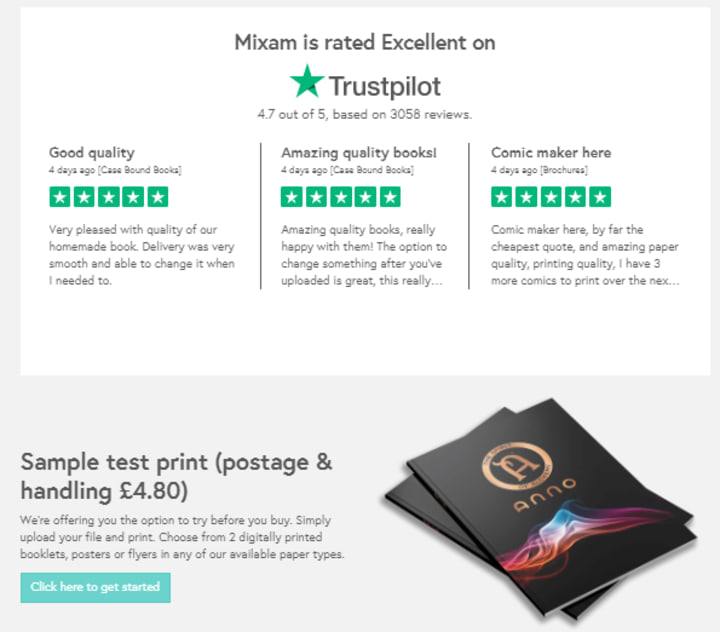If you’ve gathered enough positive reviews from legitimate platforms or sources, consider showcasing them on your website. An example of this would be how Mixam displayed its high-rating Trustpilot reviews on their homepage: