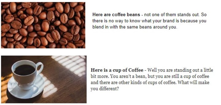 Now IMAGINE your not just a plain cup of coffee you are a Starbucks cup of coffee. Everyone knows the brand and it stands out. You know what the logo is when you see it. It’s got it’s brand.