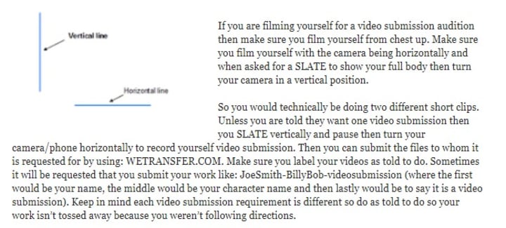 THERE MAY BE TIMES WHERE YOU SUBMIT VIDEO AUDITIONS YOURSELF AND HERE’S SOME TIPS FOR YOU REGARDING THIS SITUATION: