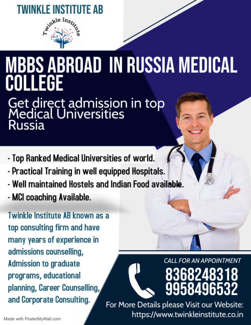 The great quality of medical education provided to international students in low budget tuition fees is one of the common and major reasons for Indian medical aspirants to pursue an MBBS from Russia. All Russian Medical Universities square measure recognized by the globe Health Organisation (WHO) and Medical Council of Asian nation (MCI) and twelve of those universities teach MBBS within the English medium. because of its international affiliations, all students UN agency pursueMBBS Abroad In Russia will follow any place within the world as well as an Asian nation. Medical Study in Russia Medical College is terribly simple for a standard student as a result of any student from everywhere in the world will take direct MBBS Admission without any exam. MBBS fee in Russia is extremely low as a result of the Russian Government provides grants for education. The average MBBS fee in Russia is between three lacs to five Lacs per anum. All Top Ten Medical University In Russia square measure listed in UN agency and MCI thus a student UN agency gets an MBBS degree from Russia will follow anyplace within the world as well as an Asian nation. International Medical aspirants from different corners of the world head towards Russia for medical studies and all Russian medical universities offer quality medical education to their all students. Students get absolutely outfitted hostel facilities within the university field with contemporary and quality food. Medical students can get scholarships also if they fulfil the scholarship criteria of Russian medical universities. All MBBS students in Russia get Medical Insurance for all courses and acquire full medical treatment after they would like. Students get coaching for MCI screening take a look at it throughout the medical course and professors square measure cognizant concerning the MCI screening take a look at. Medical courses square measure schooled in English and Russian languages, MBBS students additionally get coaching to find out Russian Language as a result of by learning the Russian language a student will communicate with patients within the hospital throughout the time of practice.