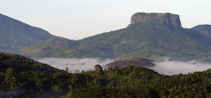 Bible Rock is hidden by dense vegetation and is referred to by locals as Bathalegala. One can question if it is indeed climbable given that the Rock appears to ascend almost vertically. It rises to a height of 798 meters above sea level and is located close to Aranayaka in the Kegalle District of central Sri Lanka. The same road that the British used to invade the Kandyan Kingdom in 1815, Kadugannawa Pass on the Colombo-Kandy Road offers spectacular views of this interesting mountain. Anyone driving between Kandy and Colombo may view Bible Rock, but those using the train from Colombo to Kandy can also easily see it.