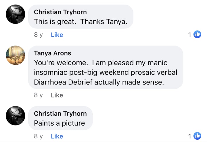 I did not engage with her either. They stood beside me and enjoyed the music and the vibe and I had a sense they were quietly absorbing some of my wild energies. They did not try to invade my space but were respectfully standing nearby.