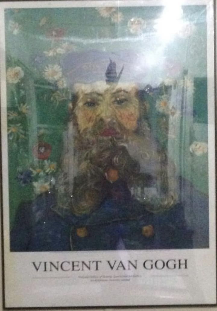 So heres the funny thing right, as a very spiritual person I am often amused by synchronicity and manifestations. So um, it's no big secret that I am a bit of a sucker for the fantasy of real love, (even if I can't achieve it.....to date...lol) so I decided to clear some of the excessive feminine energy I have in my home by putting up a poster of the Postman by Vincent Van Gogh...see photos below!