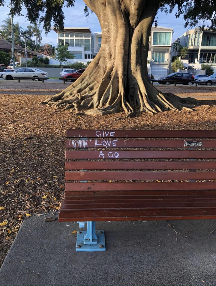 At Orleigh Park near where we experienced the West End Drumming Circle. I had to laugh as once again my ex lover was there with his woman, and I rose above it beautifully. But then I saw this sign covered in birdshit and had to laugh.