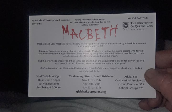 I am looking forward to attending Crystal’s performance as a Witch in “That Play” written by William Shakespeare. Starts with M ends with H! Really exciting! I haven’t been to one of my daughter’s performances in months. She is a superb actor so I am in for a treat!