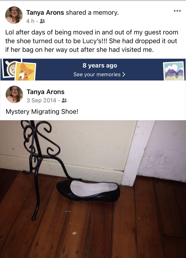 It puzzled me that there was only one shoe, so I picked it up and brought it inside. I put it inside the spare room. The next night the shoe appeared outside the bedroom door. Today Day 2 of shoe rejection it is still sitting there, solelessly singing a plaintive song. Wtf?